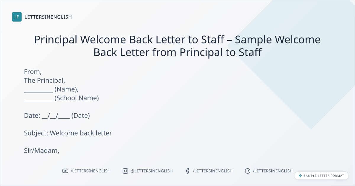 Principal Welcome Back Letter to Staff – Sample Welcome Back Letter from Principal to Staff