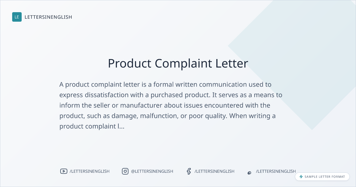 Product Complaint Letter