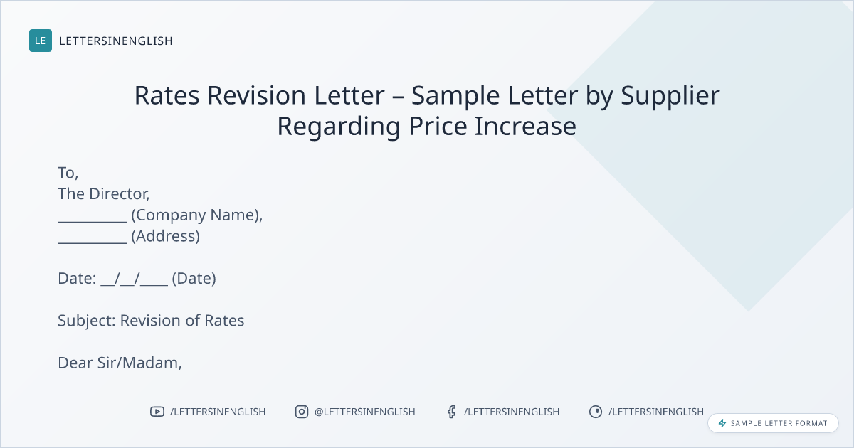 Rates Revision Letter – Sample Letter by Supplier Regarding Price Increase