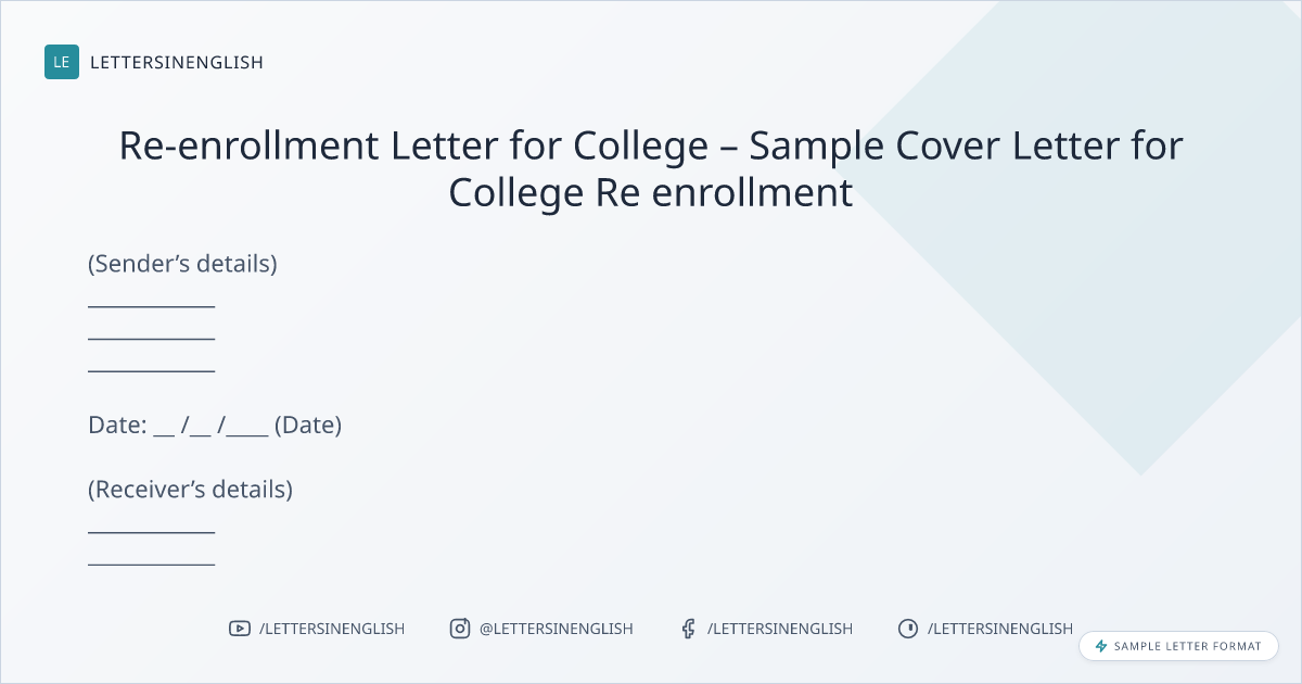 Re-enrollment Letter for College – Sample Cover Letter for College Re enrollment