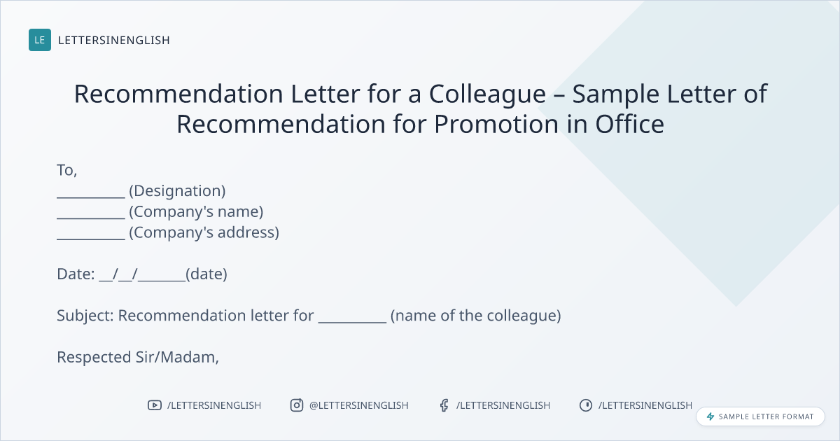 Recommendation Letter for a Colleague – Sample Letter of Recommendation for Promotion in Office
