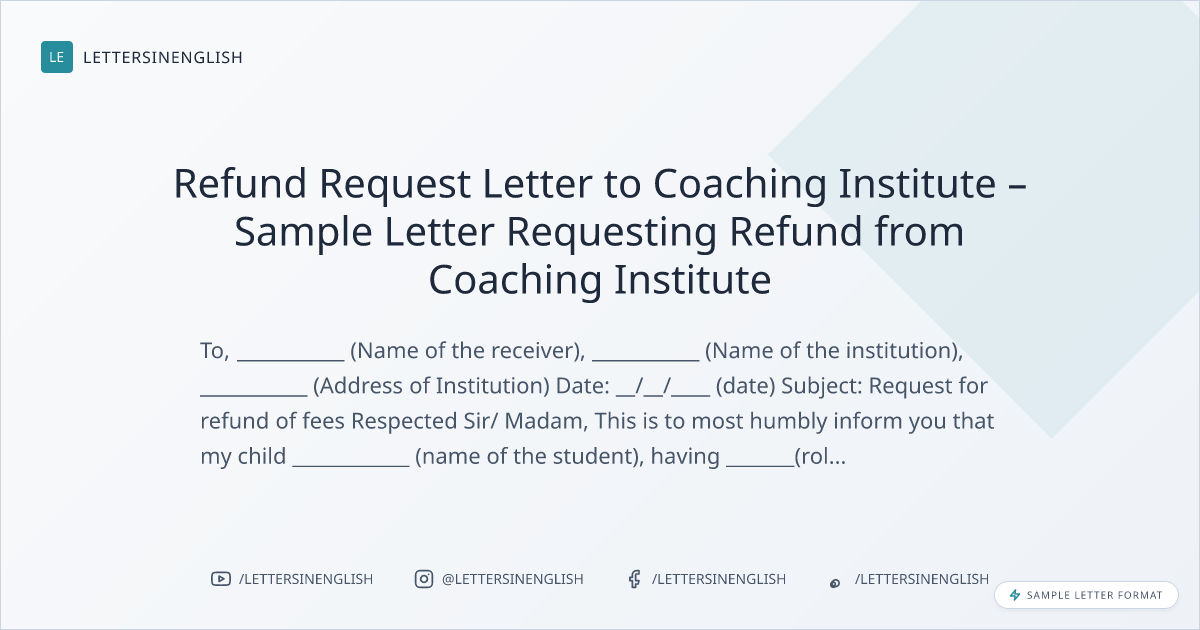 Refund Request Letter to Coaching Institute – Sample Letter Requesting Refund from Coaching Institute