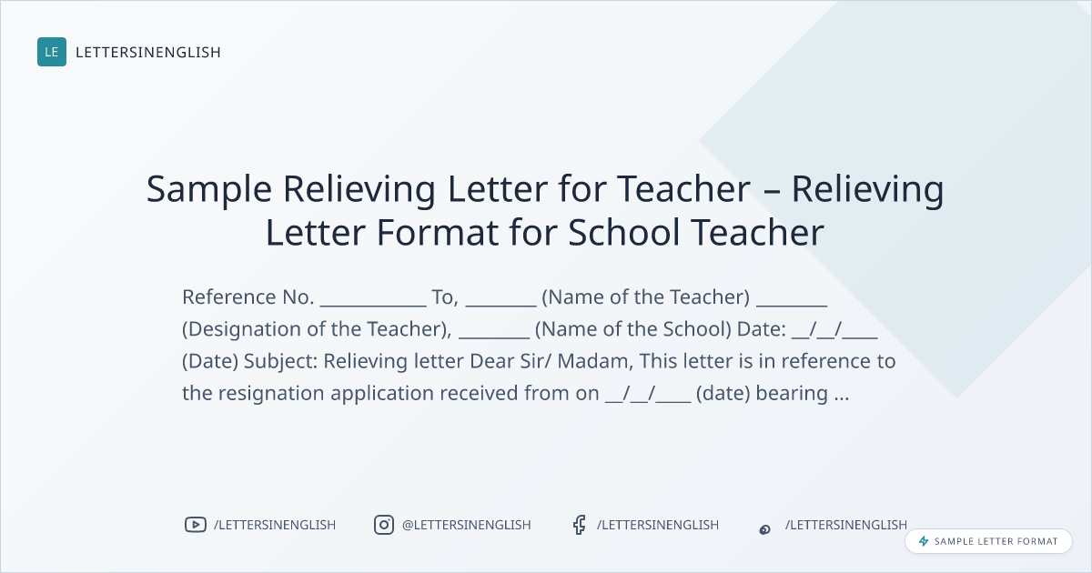 Sample Relieving Letter for Teacher – Relieving Letter Format for School Teacher