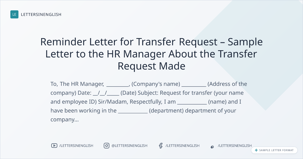 Reminder Letter for Transfer Request – Sample Letter to the HR Manager About the Transfer Request Made