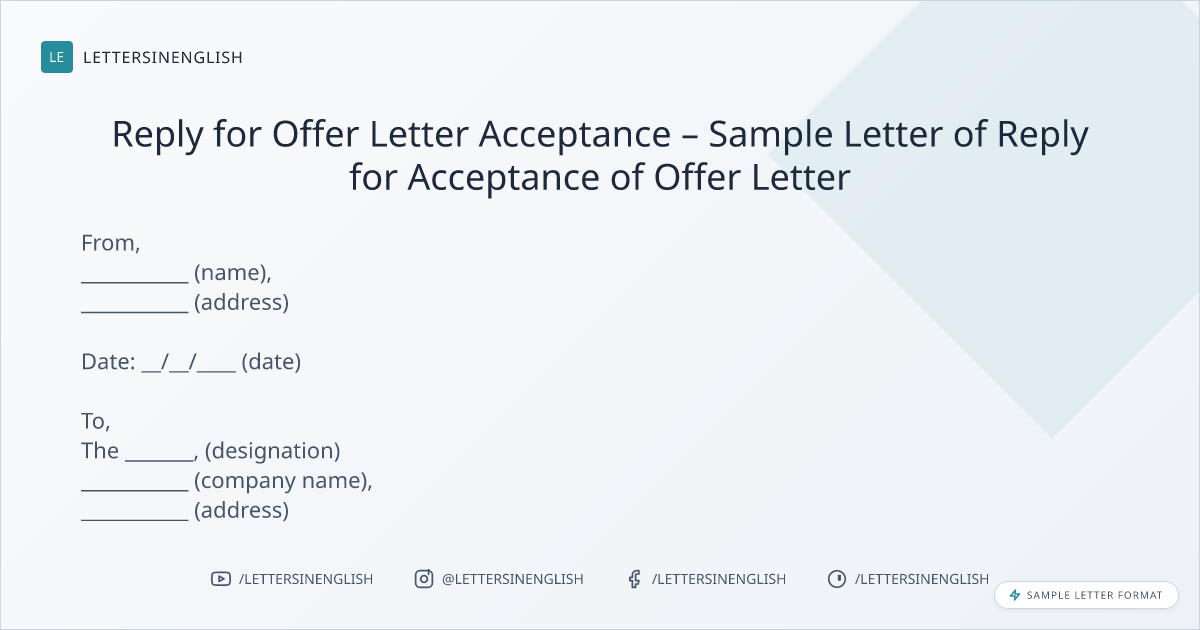 Reply for Offer Letter Acceptance – Sample Letter of Reply for Acceptance of Offer Letter