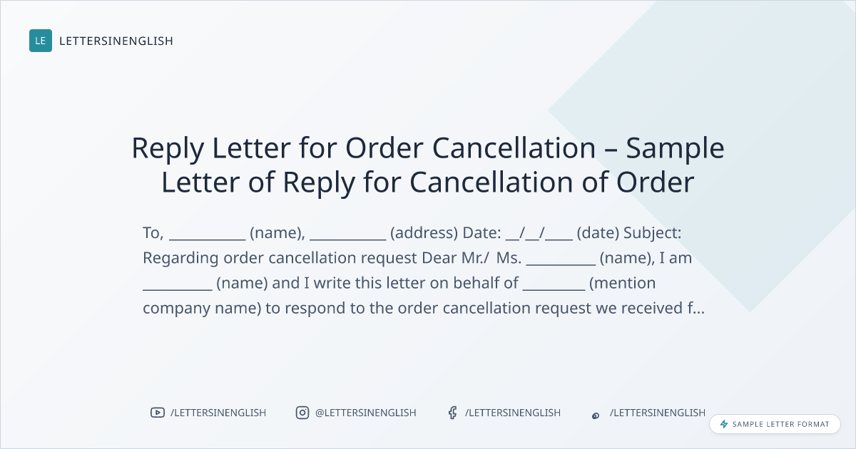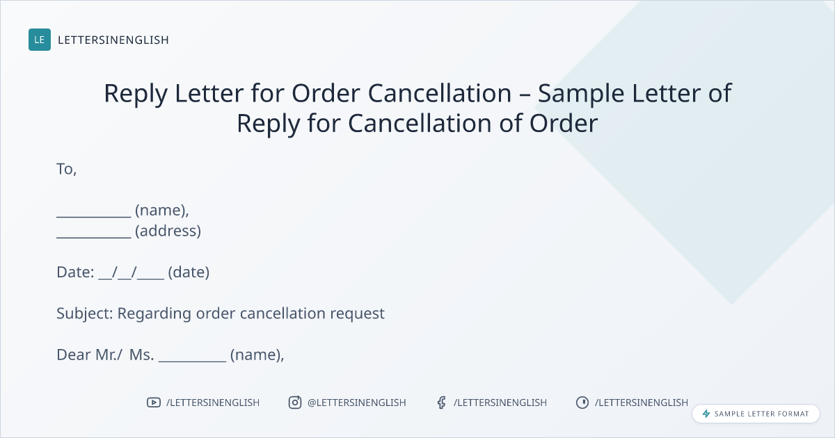 Reply Letter for Order Cancellation – Sample Letter of Reply for Cancellation of Order
