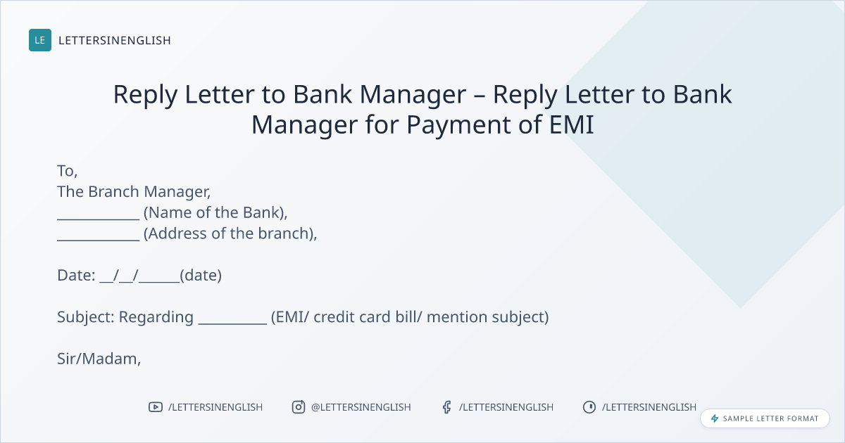 Reply Letter to Bank Manager – Reply Letter to Bank Manager for Payment of EMI