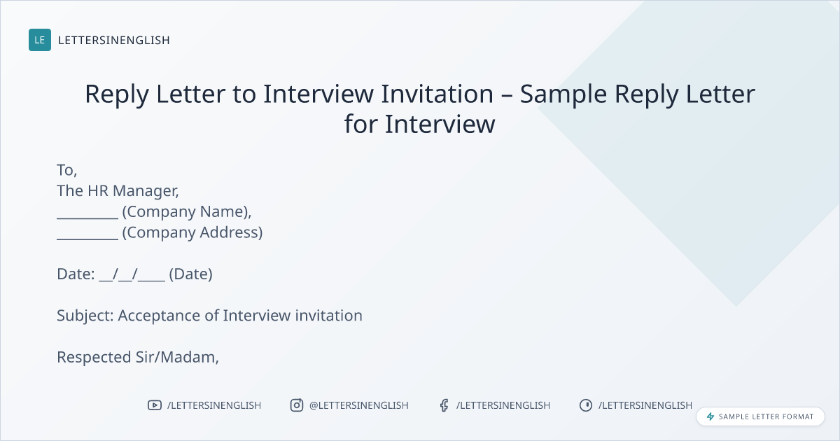 Reply Letter to Interview Invitation – Sample Reply Letter for Interview