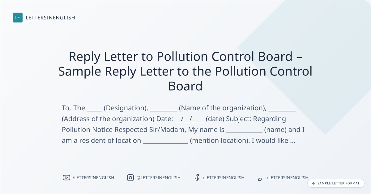 Reply Letter to Pollution Control Board – Sample Reply Letter to the Pollution Control Board