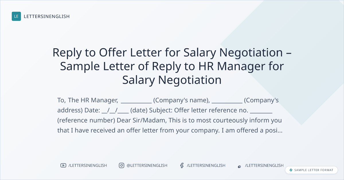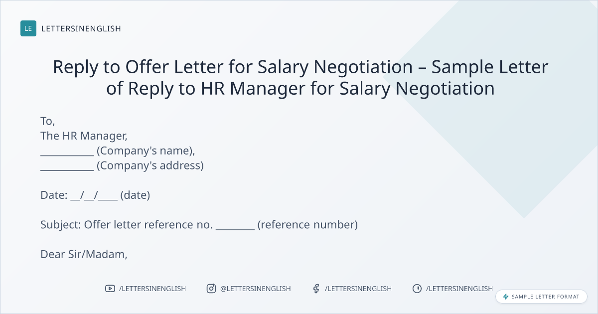 Reply to Offer Letter for Salary Negotiation – Sample Letter of Reply to HR Manager for Salary Negotiation