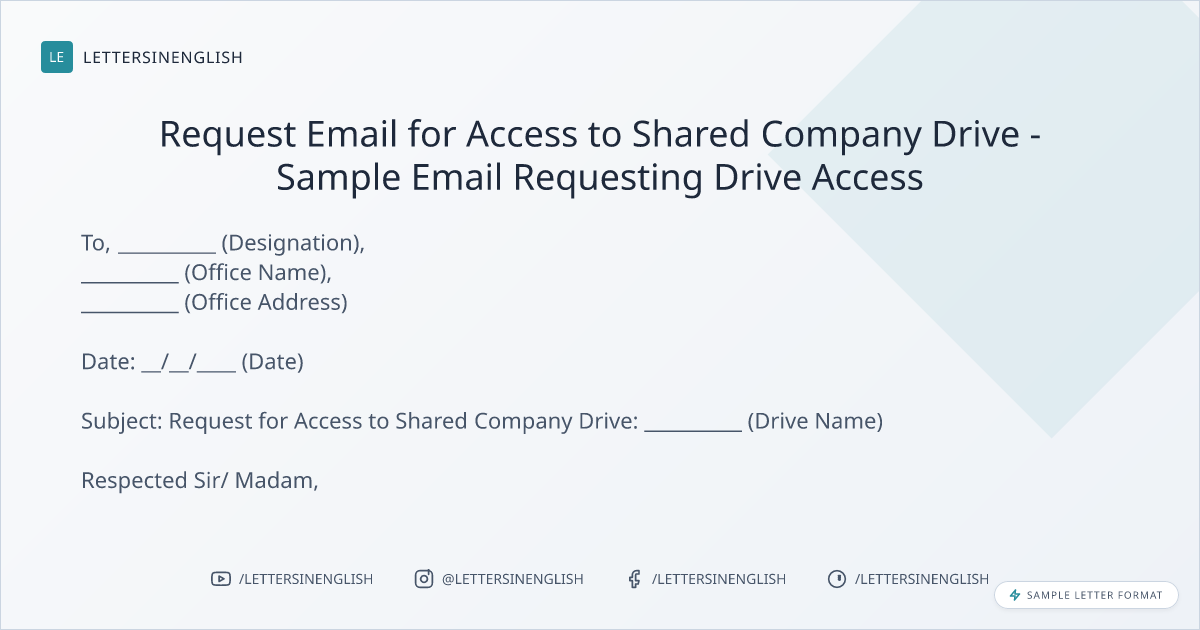 When you need to ask for access to a shared company drive, a clear and polite email is important. This guide will help you structure your request effectively.