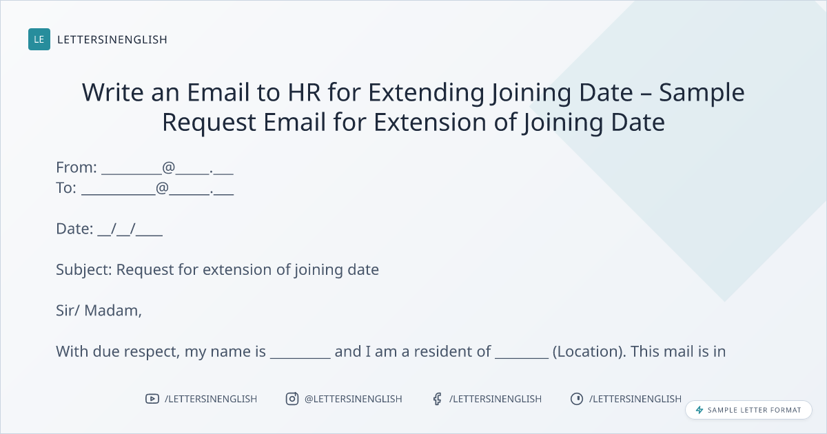 Write an Email to HR for Extending Joining Date – Sample Request Email for Extension of Joining Date