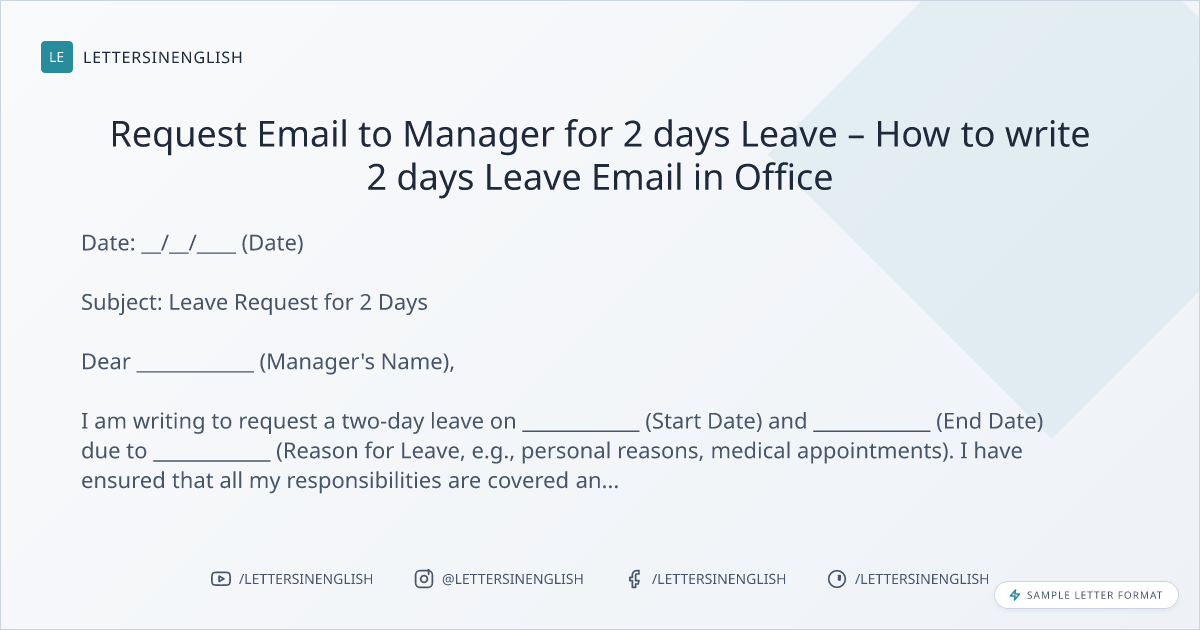 Request Email to Manager for 2 days Leave – How to write 2 days Leave Email in Office