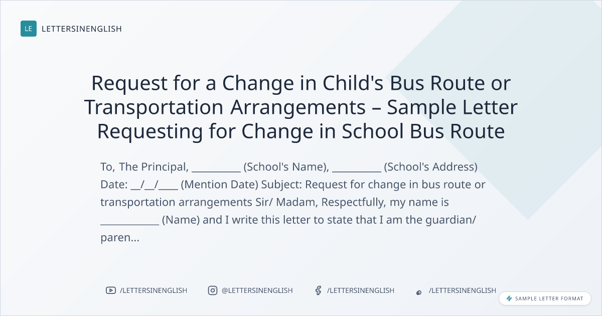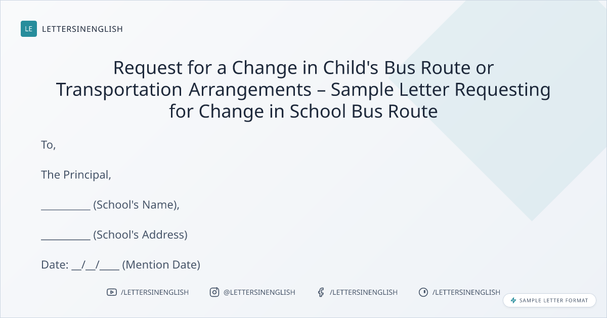 Request for a Change in Child’s Bus Route or Transportation Arrangements – Sample Letter Requesting for Change in School Bus Route