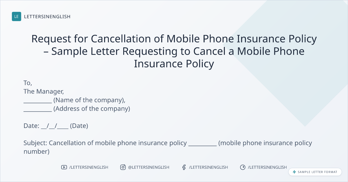 Request for Cancellation of Mobile Phone Insurance Policy – Sample Letter Requesting to Cancel a Mobile Phone Insurance Policy