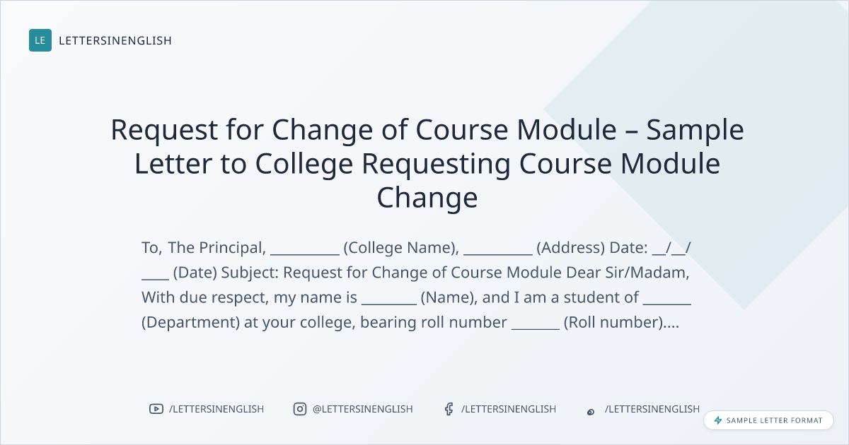 Request for Change of Course Module – Sample Letter to College Requesting Course Module Change