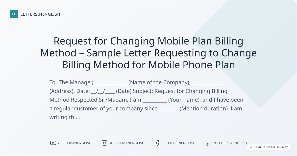 Request for Changing Mobile Plan Billing Method – Sample Letter Requesting to Change Billing Method for Mobile Phone Plan