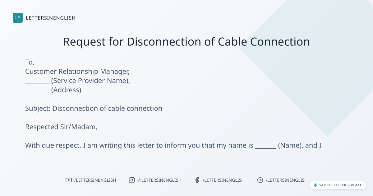 Sample Letter for Disconnection of cable connection