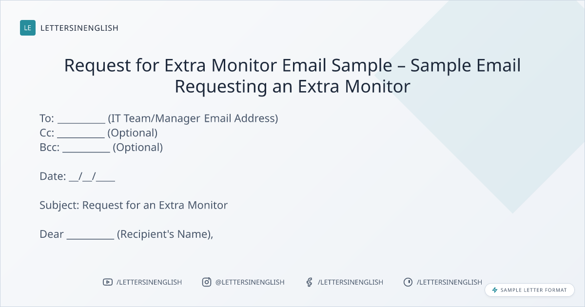 Request for Extra Monitor Email – Sample Email to Request Additional Monitor for Work