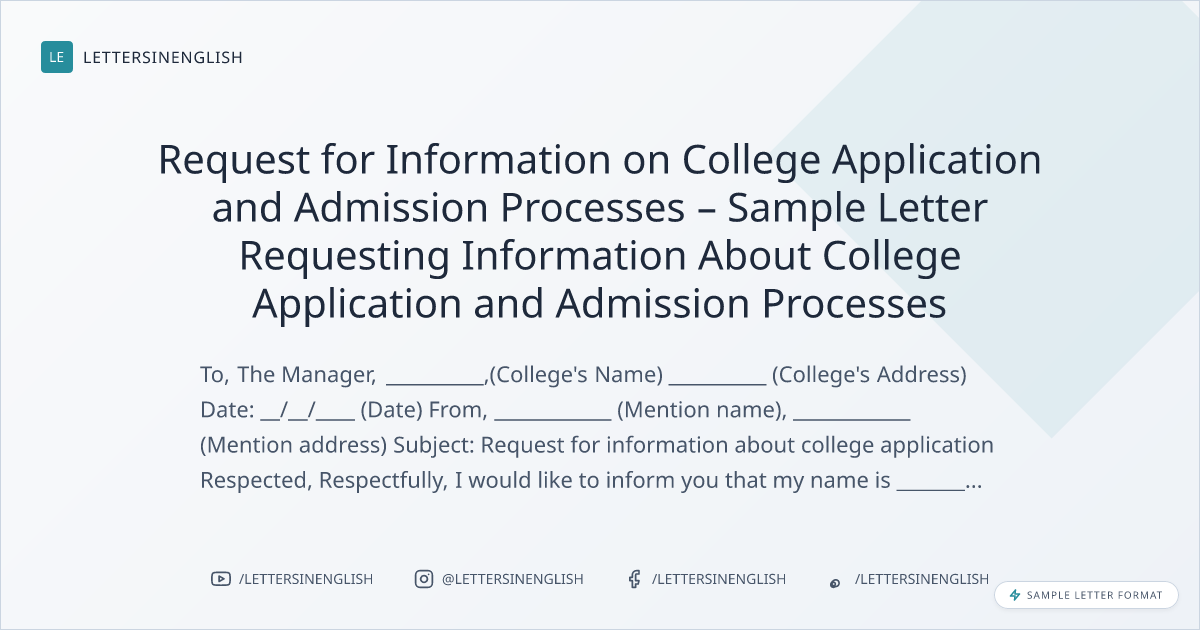 Request for Information on College Application and Admission Processes – Sample Letter Requesting Information About College Application and Admission Processes