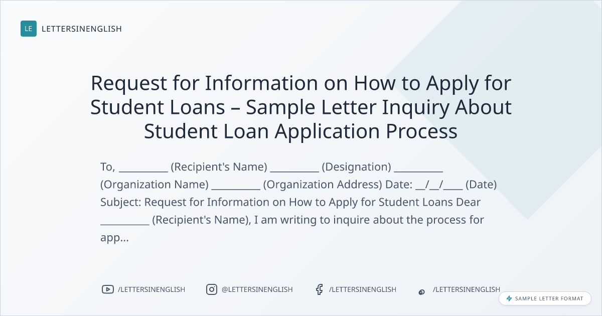 Request for Information on How to Apply for Student Loans – Sample Letter Inquiry About Student Loan Application Process