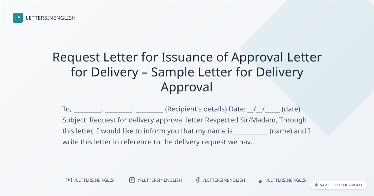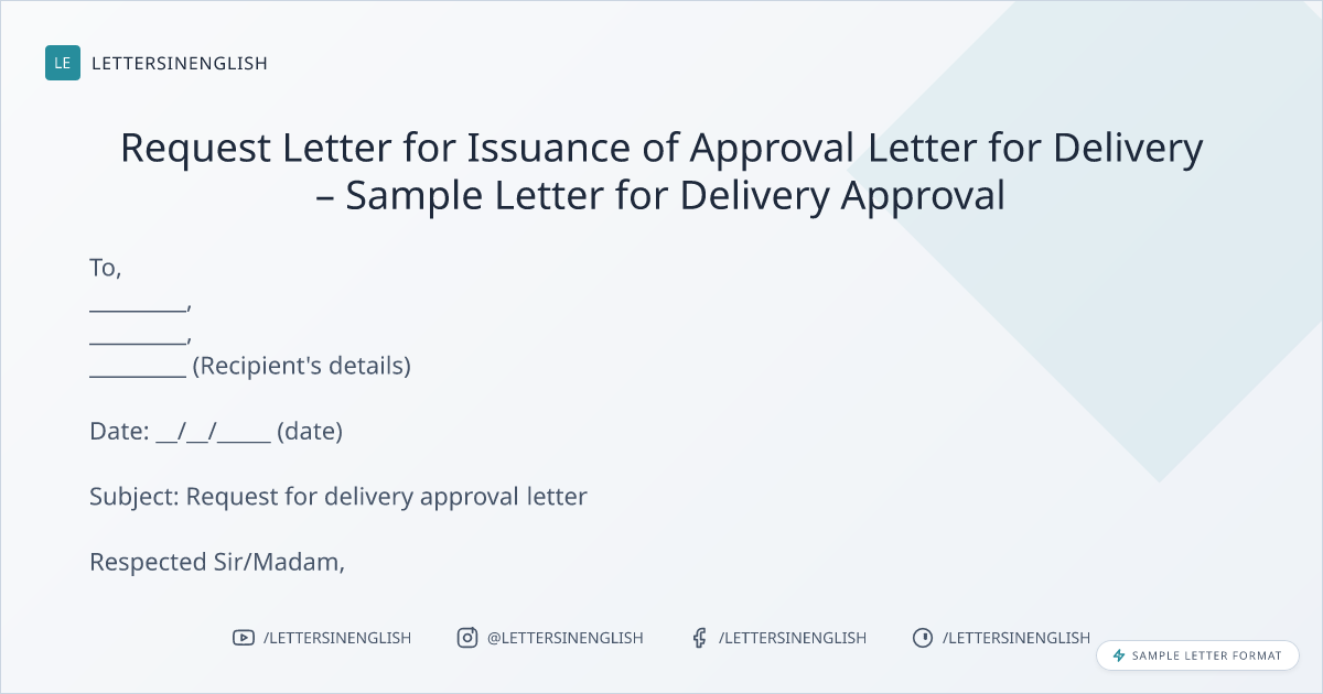 Request Letter for Issuance of Approval Letter for Delivery – Sample Letter for Delivery Approval
