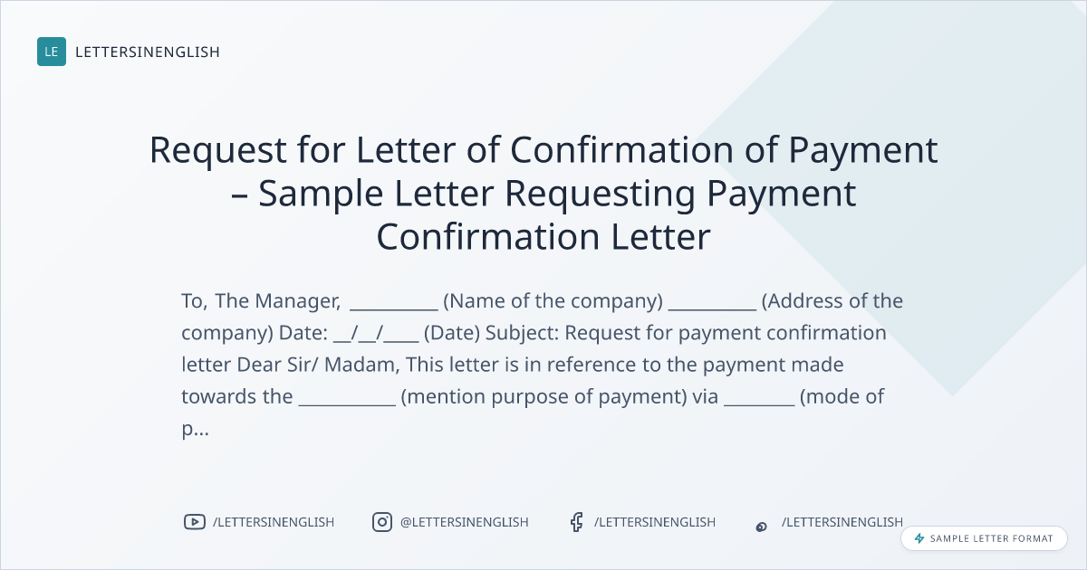 Request for Letter of Confirmation of Payment – Sample Letter Requesting Payment Confirmation Letter