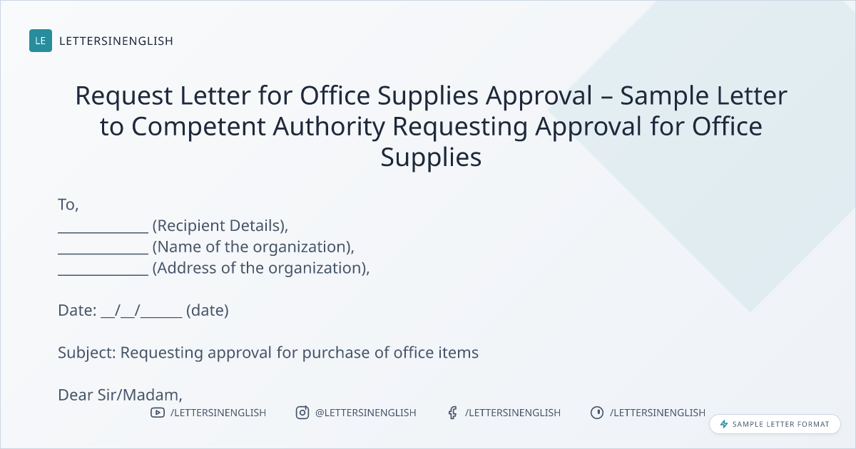 Request Letter for Office Supplies Approval – Sample Letter to Competent Authority Requesting Approval for Office Supplies