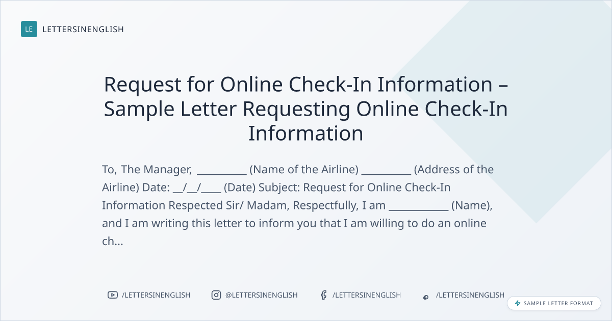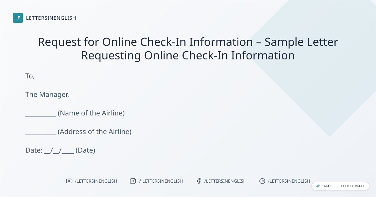 Request for Online Check-In Information – Sample Letter Requesting Online Check-In Information