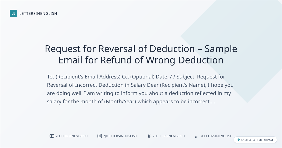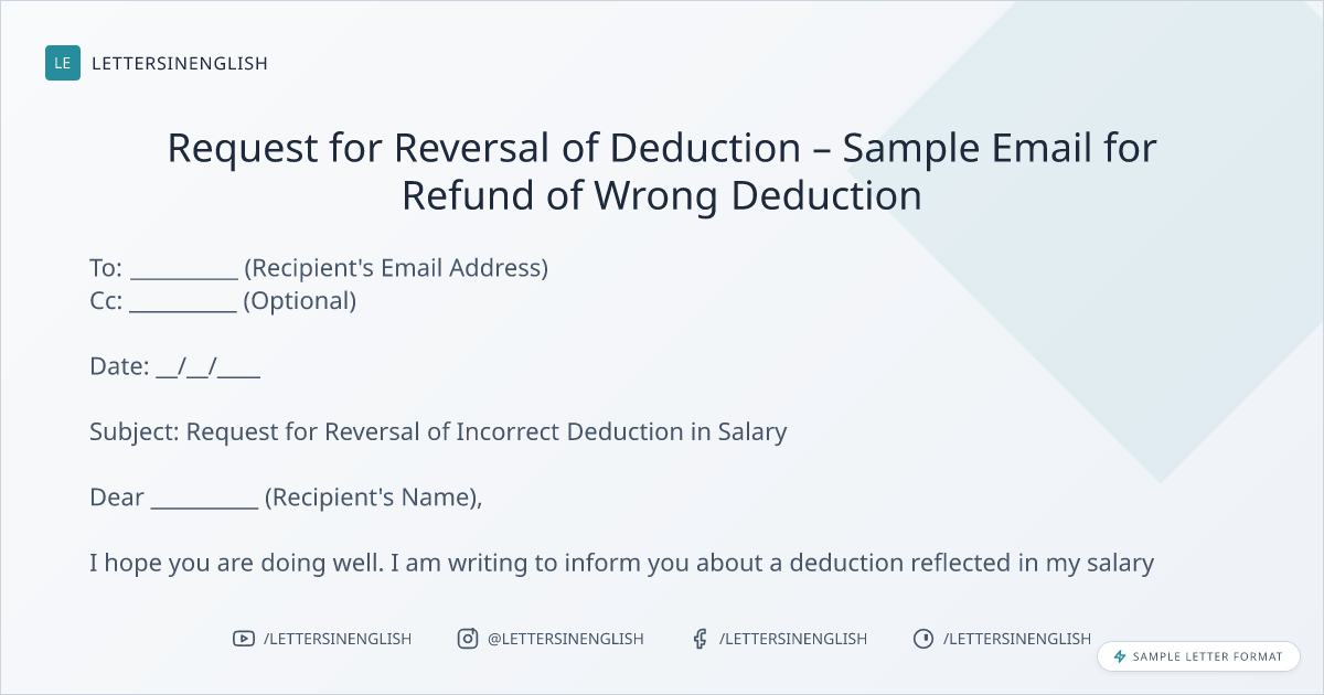 Request for Reversal of Deduction - Professional Email for Wrong Salary Deduction Refund