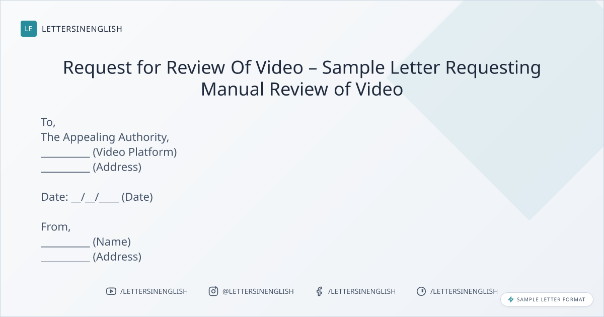 Request for Review Of Video – Sample Letter Requesting Manual Review of Video