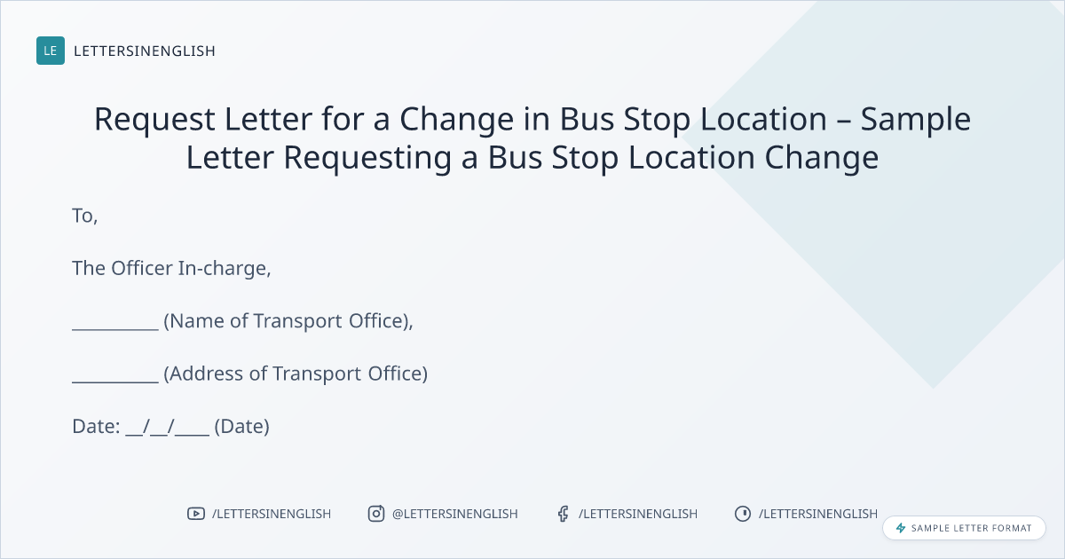 Request Letter for a Change in Bus Stop Location – Sample Letter Requesting a Bus Stop Location Change
