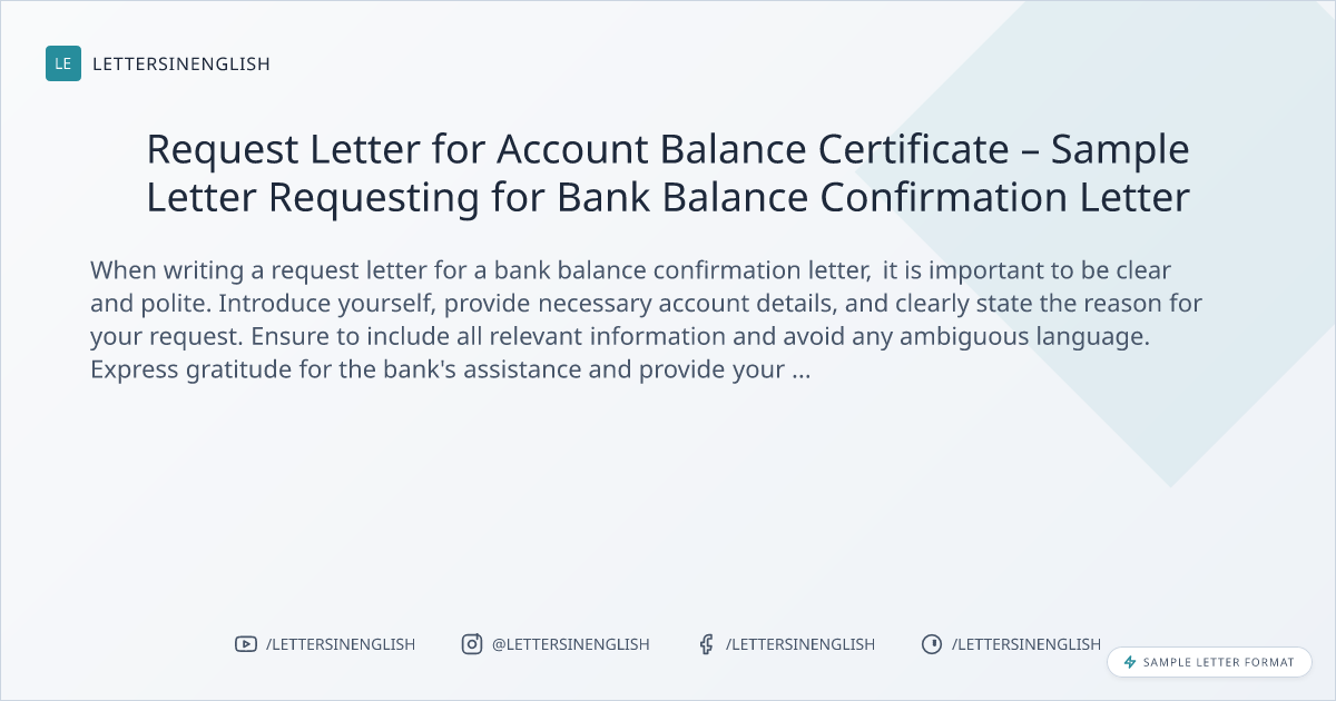 Request Letter for Account Balance Certificate – Sample Letter Requesting for Bank Balance Confirmation Letter