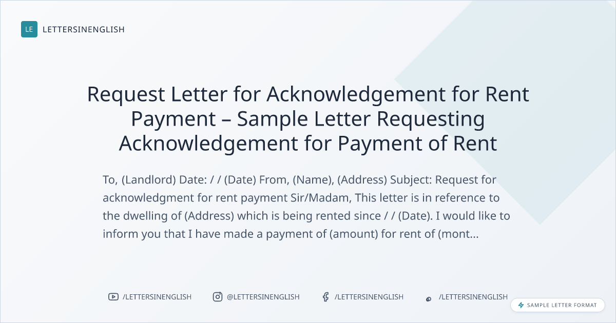 Request Letter for Acknowledgement for Rent Payment – Sample Letter Requesting Acknowledgement for Payment of Rent