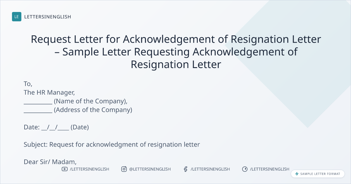 Subject: Request for acknowledgment of resignation letter
