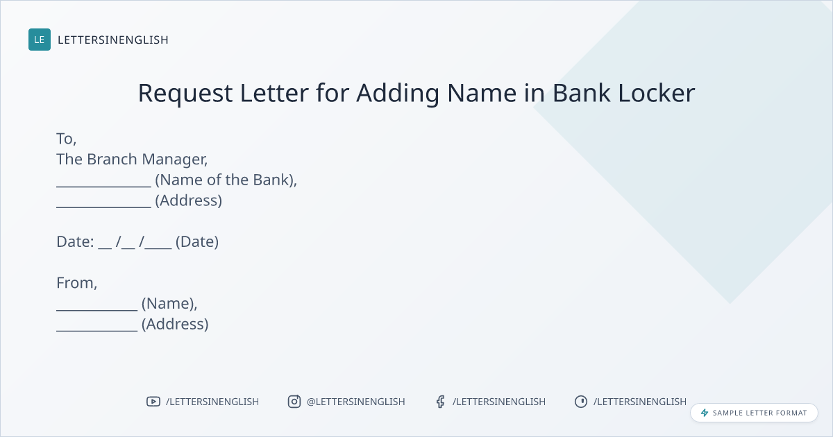 Subject: Addition of name for bank locker number ________ (Locker Number)