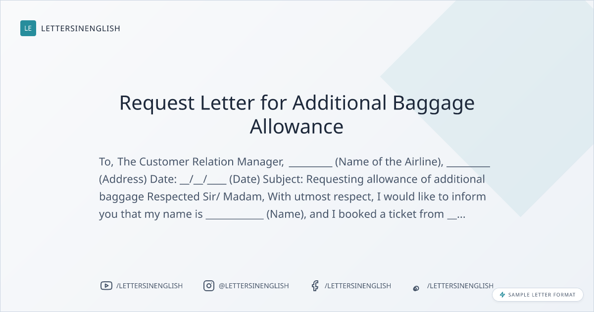 Request Letter for Additional Baggage Allowance