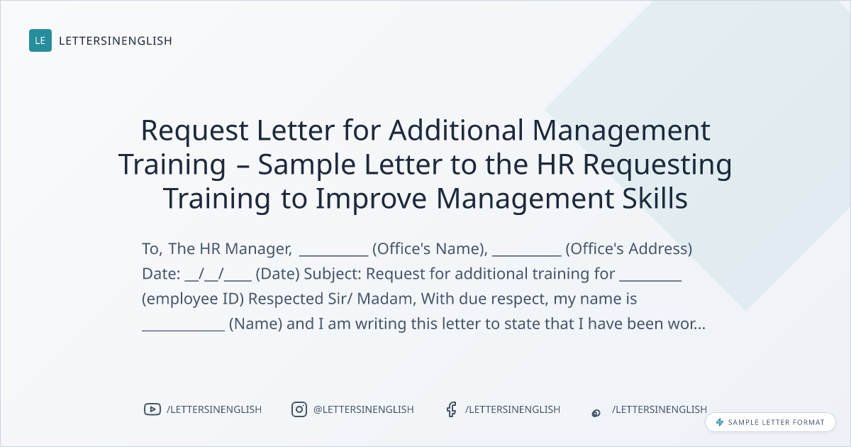 Request Letter for Additional Management Training – Sample Letter to the HR Requesting Training to Improve Management Skills