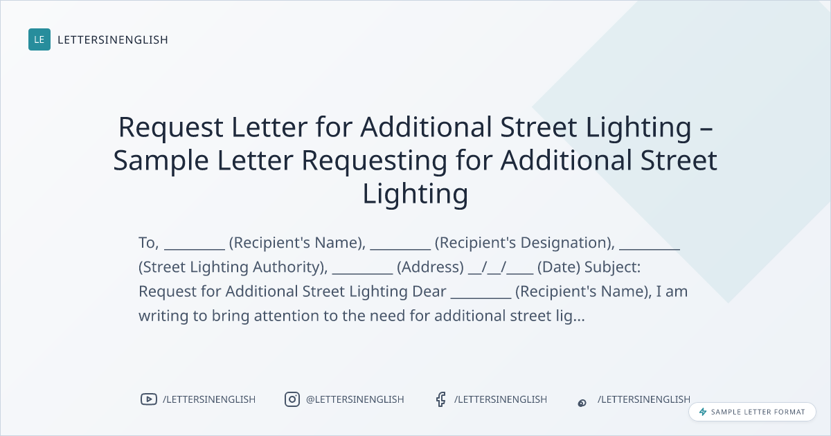 Request Letter for Additional Street Lighting – Sample Letter Requesting for Additional Street Lighting