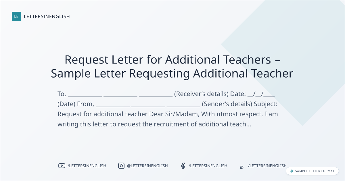 Request Letter for Additional Teachers – Sample Letter Requesting Additional Teacher