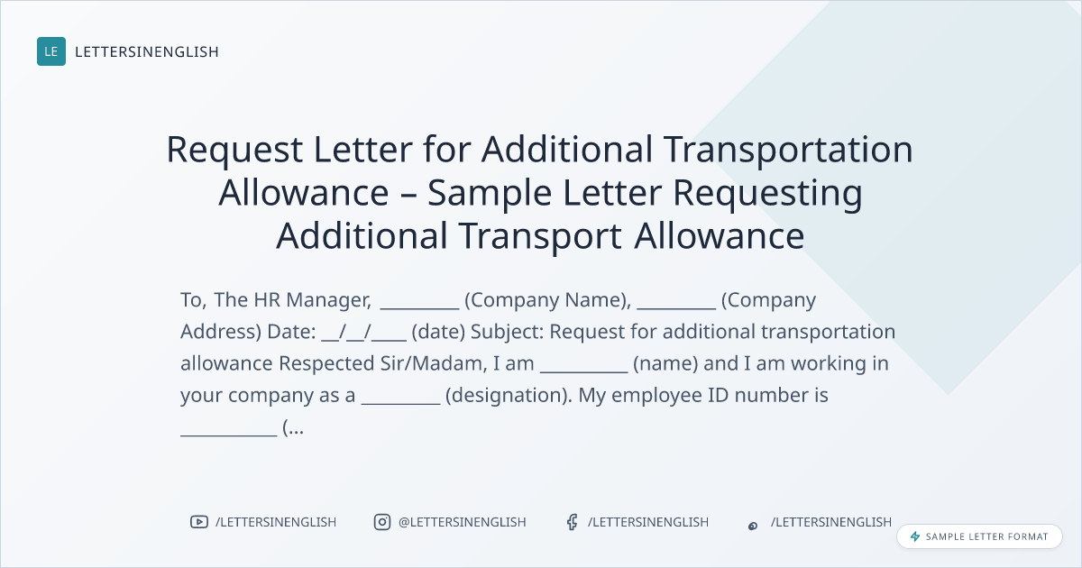 - request letter for additional transportation allowance