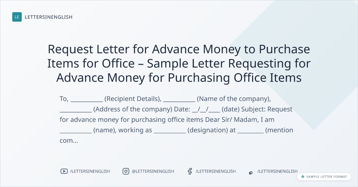Sample Request Letter for Advance Money to Purchase Items for Office