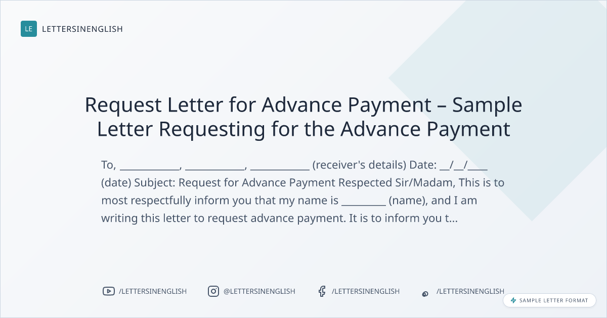 This is to most respectfully inform you that my name is _________ (name) and I write this letter in order to request advance payment.