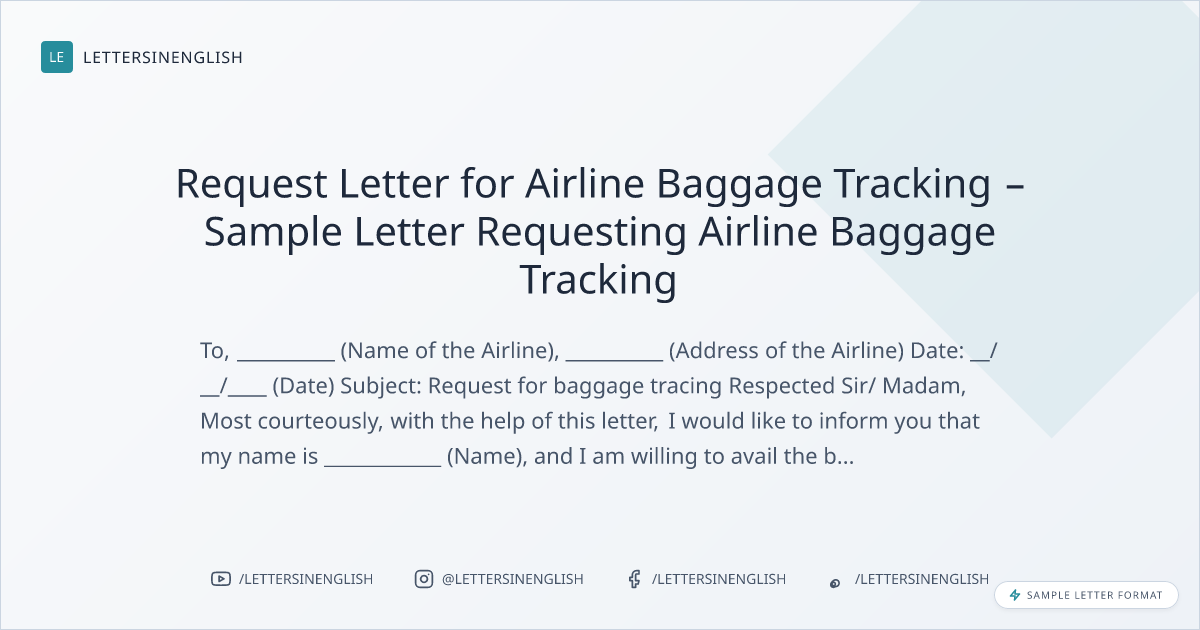 LETTERSINENGLISHRequest Letter for Airline Baggage Tracking – Sample Letter Requesting Airline Baggage Tracking