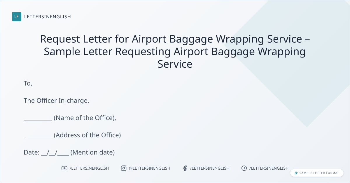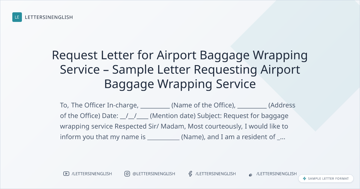 Request Letter for Airport Baggage Wrapping Service – Sample Letter Requesting Airport Baggage Wrapping Service