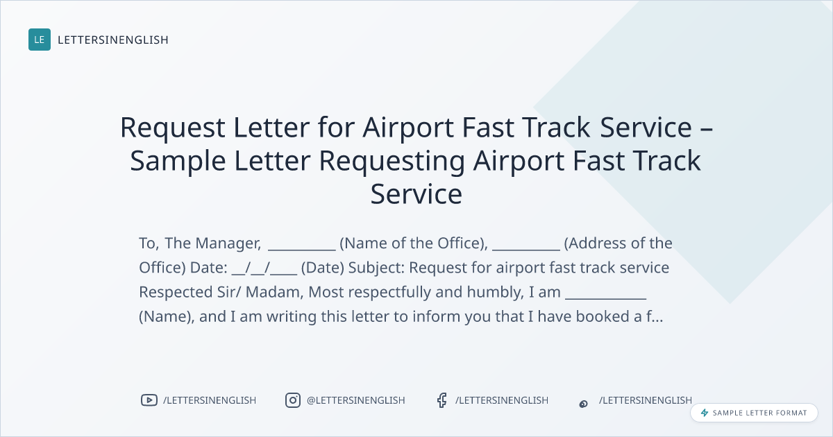 Request Letter for Airport Fast Track Service – Sample Letter Requesting Airport Fast Track Service