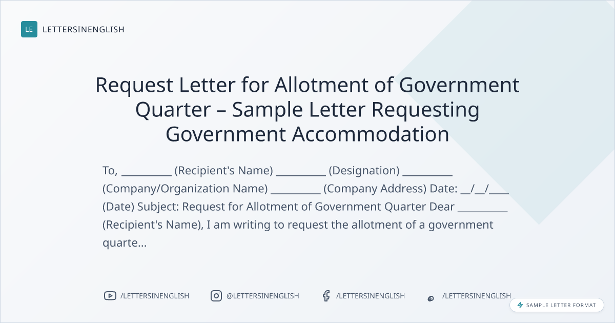 Request Letter for Allotment of Government Quarter – Sample Letter Requesting Government Accommodation