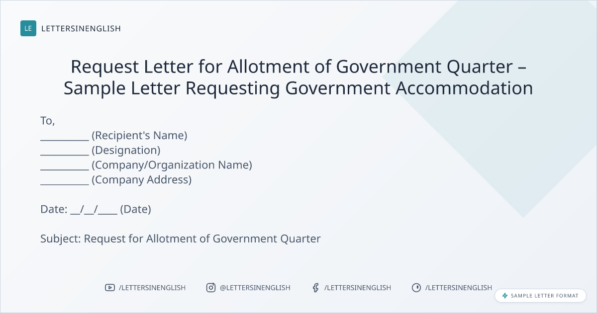 Sample Letter for Government Quarter Accommodation Request