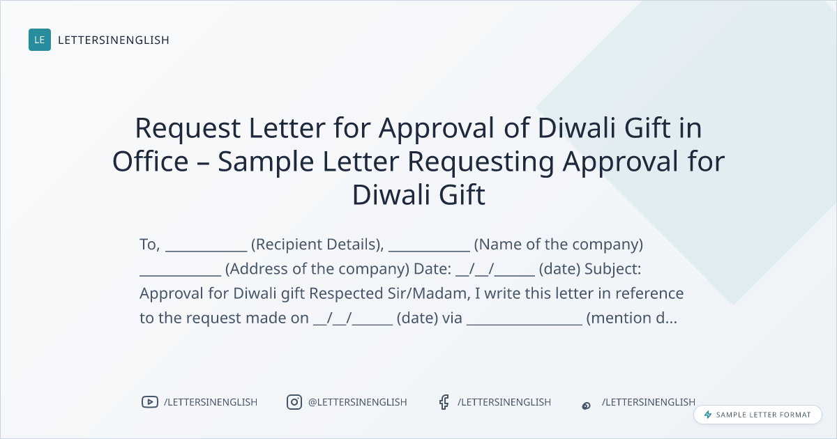 Request Letter for Approval of Diwali Gift in Office – Sample Letter Requesting Approval for Diwali Gift