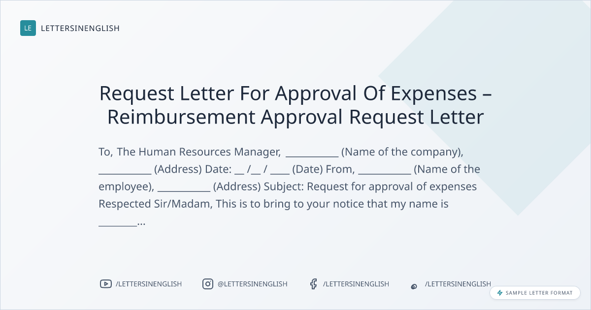 Request Letter For Approval Of Expenses – Reimbursement Approval Request Letter